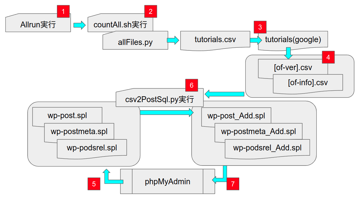 という3つのSQLファイルが作成されるので、これらをphpMyAdminを使ってインポートして、エラーが生じなければ作業が完了となる。