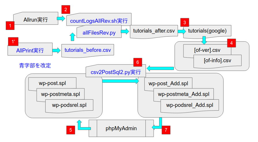 上記で得られたtutorials_after.csv は、一部に不具合があるので、手修正作業が必要になるが、改訂版では作業量が大幅に減少した。