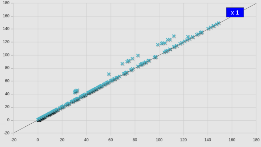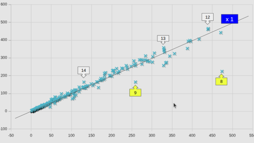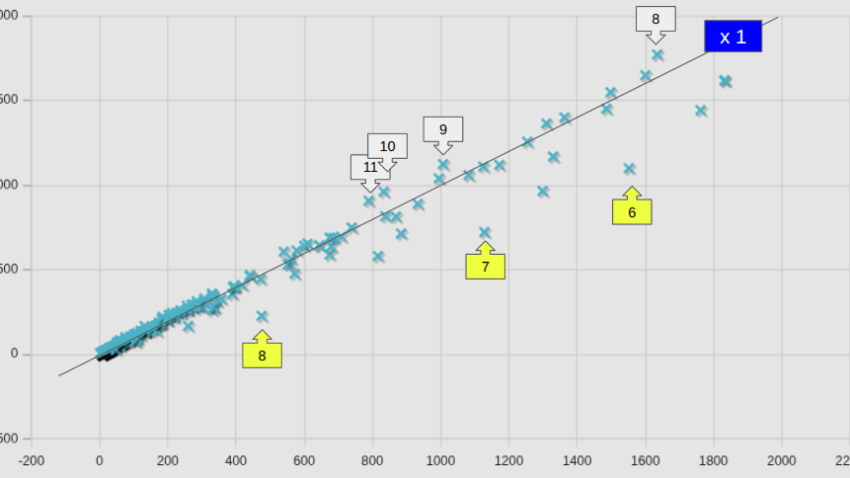 明らかに変化なし(x1)のラインからオフセットしたケースが多く存在していた。これらのケースは、ほとんどが、前項の最後の方に記したadjoiintOptimizationFoamソルバーを使ったケースであった。