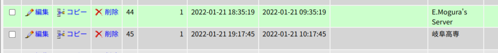 2,3 行目はデータベースのID番号であり、新たにデータベースを追加した場合などは、phpMyAdminを使って、wp_postデータを直接参照して確認することになる。